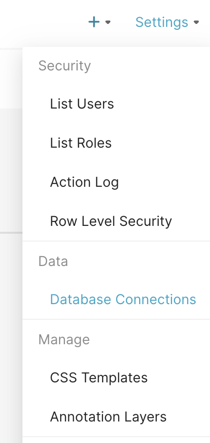 Once Apache Superset is up and running, and you are logged in, you can configure a connection to Spice.